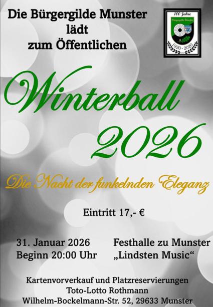 Am 31. Januar 2026 ist es wieder soweit. Mit dem öffentlichen Winterball der Bürgergilde Munster e.V. startet um 20:00 Uhr die neue Ballsaison. Es wird in die unter