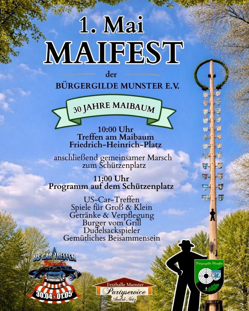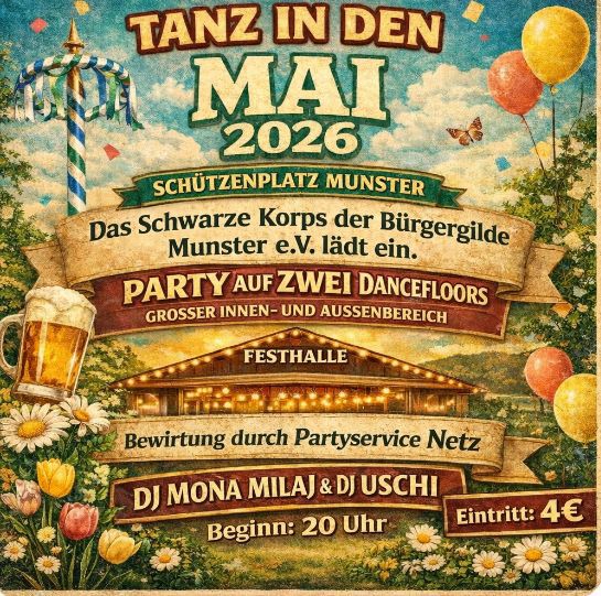 „Tanz in den Mai“ auf dem Schützenplatz Munster. Unser Festwirt André Netz und seine Mannschaft werden die Gäste in bewährter Form bewirten.
