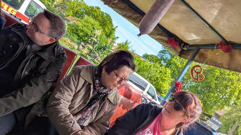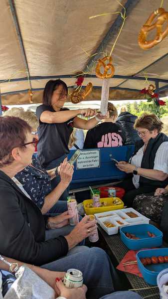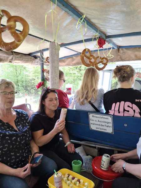 Die Korpsführung unter Sabine Rothmann und deren Stellvertreterin und derzeitige Damenbeste Carolin Sobczak haben für Getränke und Snacks auf der Kutsche gesorgt. Auch die passende Musik zum