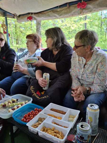 Nach der Hälfte der Strecke warteten die Männer mit Bratwurst im Brötchen auf die Damen und es wurden sich etwas die Beine vertreten oder mit Wikinger-Schach ein bisschen Bewegung verschafft.