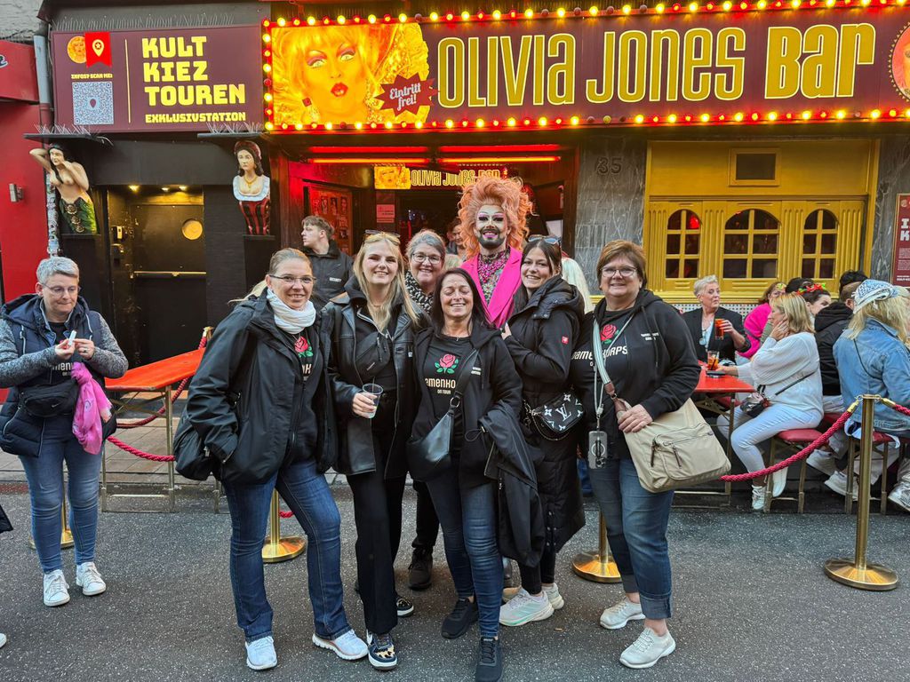 einem ersten Umtrunk die Stimmung stieg. Danach folgte ein echtes Highlight: Die Kult-Kieztour mit Koberer Fabian Zahrt, der mit Charme, Witz und Insiderwissen durch das berühmtberüchtigte Viertel