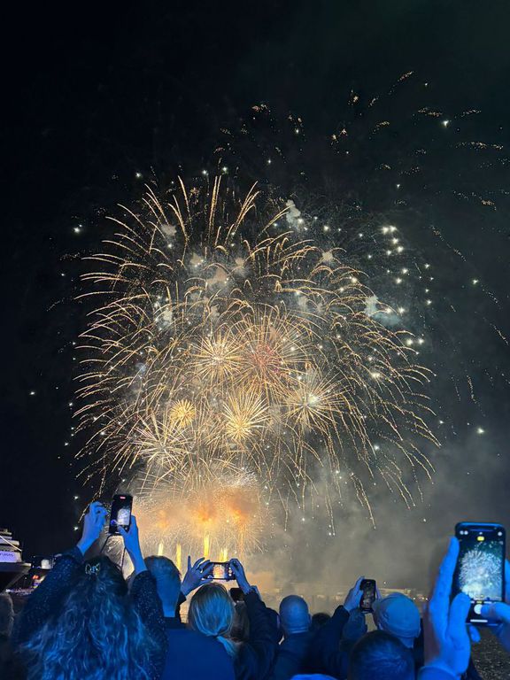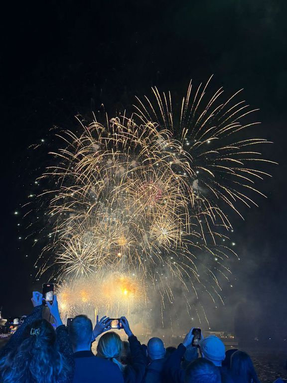 zu bestaunen. Gekrönt wurde das Erlebnis von einem gigantischen Feuerwerk, das den Himmel über der Elbe in ein Farbenmeer verwandelte.