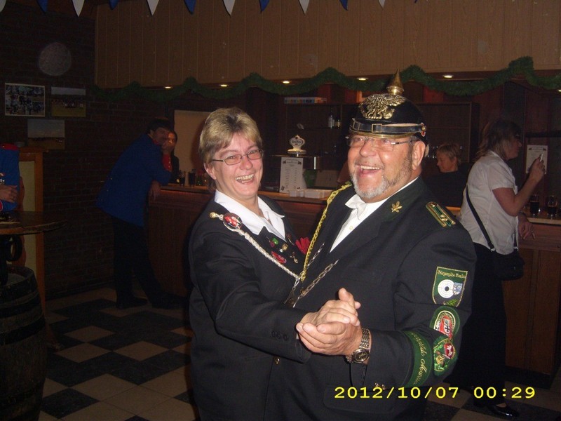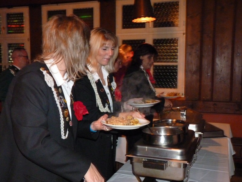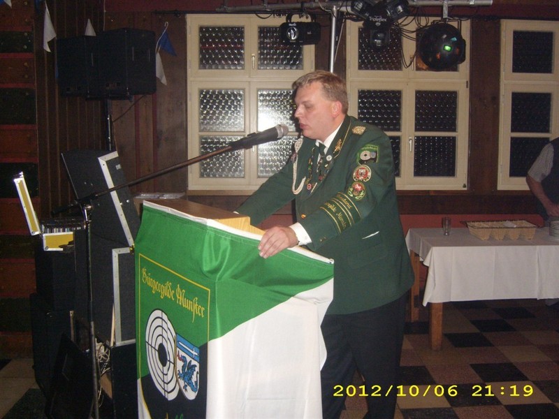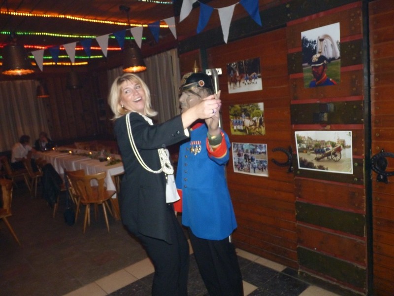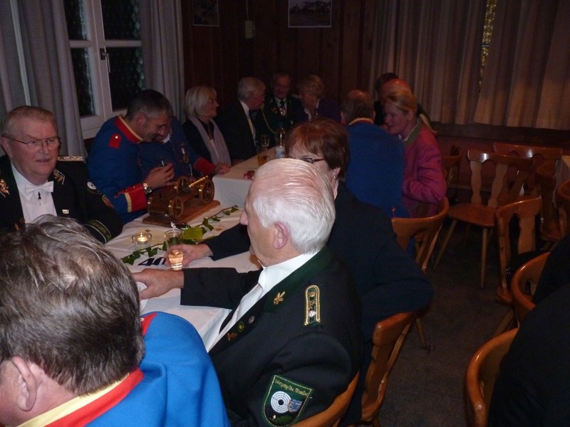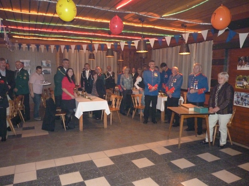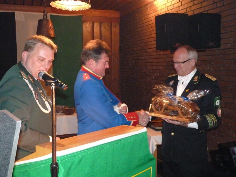 Nach einem gemeinsamen Essen war es der 1. Gildeherr Marco Tews, der die Verdienste der Kanoniere vordergründig im Hinblick auf das Gildegeschehen der vergangenen vier Jahrzehnte Revue passieren ließ, um allerdings abschließend auch auf zukünftige nicht nachlassende Aktivitäten zu hoffen. Als Dank überreichte der Gildevorstand eine nachgebaute Miniaturausgabe der „Dicken Berta“. Stellvertretend für alle Korpsführungen der Gilde hob der Korpsführer Grünes Korps Andreas Rudat die unzähligen Einsätze der Kanoniere bei Geburtstagen, Jubiläen und anlässlich der Schützenfeste hervor. Auch er unterstrich den Dank der Korps mit einem Geschenk. Sichtlich beeindruckt von soviel Lob und Anerkennung leitete Reinke mit einem Dank an die Gastredner zum gemütlichen Teil mit Musik und Tanz über. Allerdings blieben Gespräche und der Austausch von Erinnerungen ein fester Bestandteil dieser harmonischen Jubiläumsfeier.