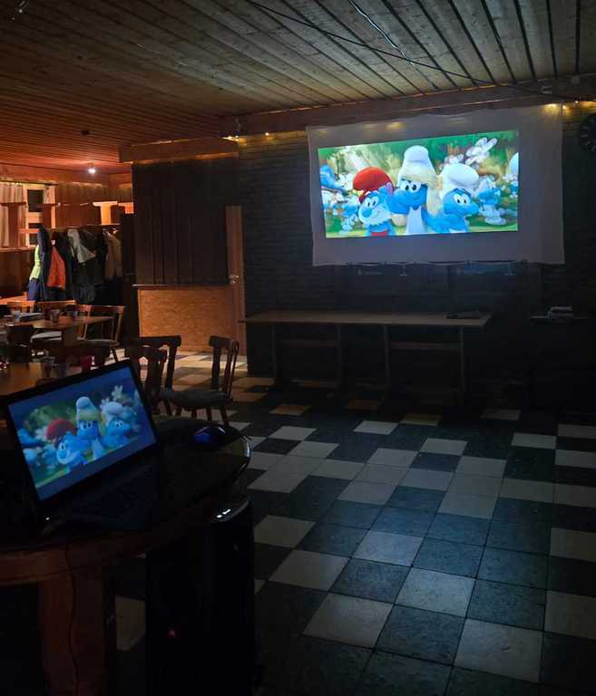 Um etwas Ruhe in das Gewusel zu bringen, schauten alle gemeinsam mit Hilfe eines Beamers und einer großen Leinwand tolle Filme.