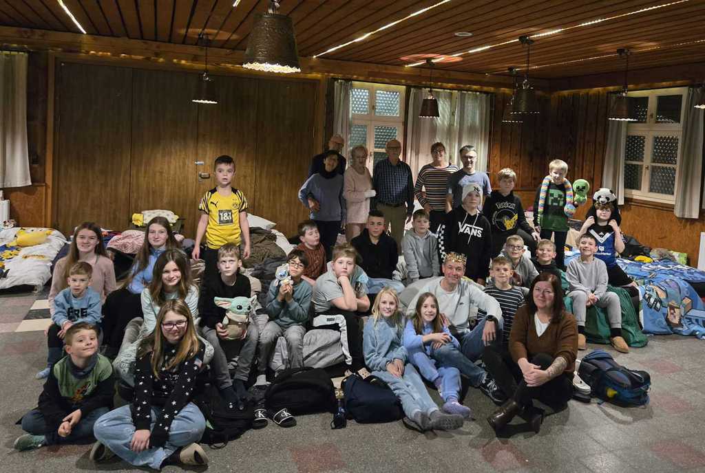 Mit einer großen Anzahl an Betreuern wurde eine Übernachtungsparty in der Blockhütte mit fast 30 Kindern des Schülerkorps der Bürgergilde Munster e.V. gefeiert.