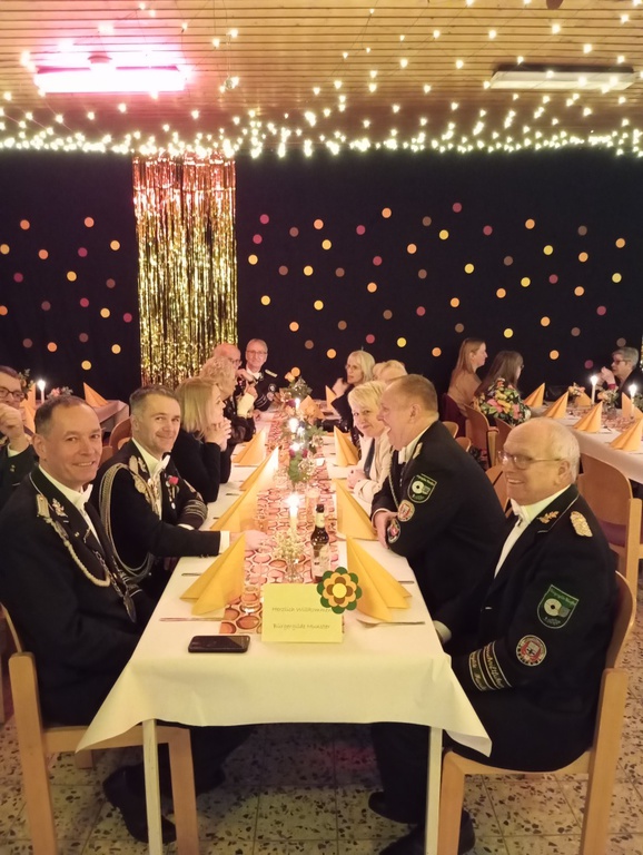 Die Schneverdinger Schützen feierten am 01.11.2025 ihren traditionellen Königsball im Hotel Hof Barrl. Gerne sind wir der Einladung von "Gerhard - dem Großzügigen nebst Gattin Elke" und dem Vereinsvorstand gefolgt, um ein paar schöne Stunden mit unseren Schützenfreunden zu verbringen. Aufgrund des Feiertages und dem damit verbundenen langen Wochenende, welches einige für einen Kurzurlaub nutzten, konnte wir zwar nur in einer kleineren Abordnung vor Ort sein, aber wir haben mit unserer Jungschützenmajestät Julian die Bürgergilde würdig vertreten. Wir freuen uns jetzt schon, unsere Freunde aus Schneverdingen beim Winterball begrüßen zu dürfen.